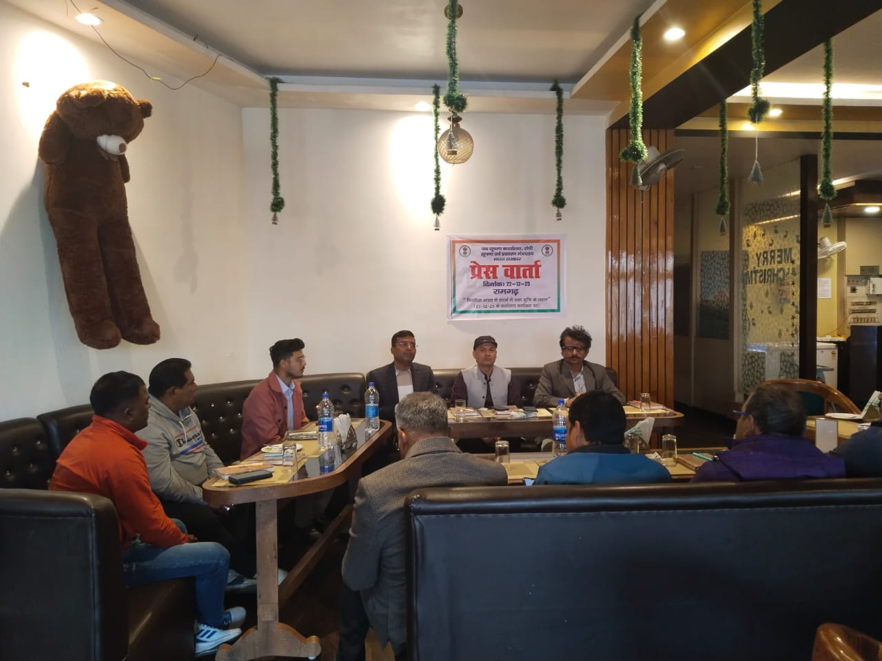 प्रेस वार्ता के दौरान दूरदर्शन समाचार संपादक सह क्षेत्रीय प्रचार आधिकारी श्री गौरव पुष्कर ने माननीय प्रधानमंत्री की महत्वाकांक्षी योजनाओं और अभियानों पर अपने विचार साझा किए। उन्होंने “विकसित भारत–जी राम जी विधेयक” के महत्वपूर्ण पहलुओं की जानकारी देते हुए पत्रकारों से अपील की कि वे “वार्तालाप” कार्यक्रम में सहभागी बनकर इन अभियानों और योजनाओं को जनसाधारण तक सरल और प्रभावी रूप में पहुंचाएं। श्री पुष्कर ने केन्द्रीय संचार ब्यूरो, रांची द्वारा मंगलवार 23 दिसम्बर 25 को रामगढ़ कॉलेज परिसर में आयोजित तीन दिवसीय "चित्र प्रदर्शनी" के विषय में भी जानकारी साझा की।