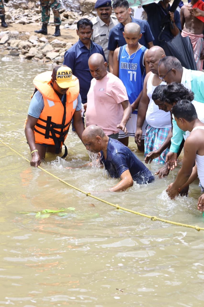The Chief Minister Hemant Soren who had tonsured himself while performing rituals on the day of Shradh on August 16,2025. He immersed the ashes in the water of Damodar river while bowing his shaved head and face down,sprinkled the water uttering “ Johar Baba…( Salute father).