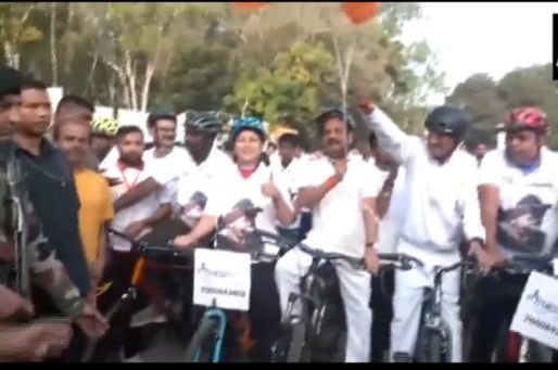Scores of sports persons and cyclists were present, giving colour to the event led by Gauri Shankar who is highly decorated retired naval officer.