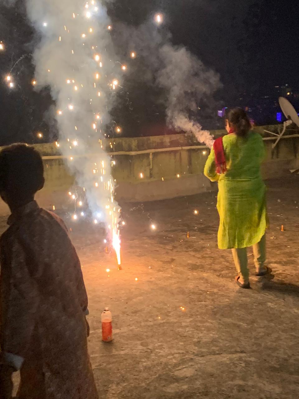*Crackers airing smoke captured by iPhone on the night of Diwali 2025 over the top floor of the Geeta Enclave, Hatma, Ranchi, capital city of Jharkhand