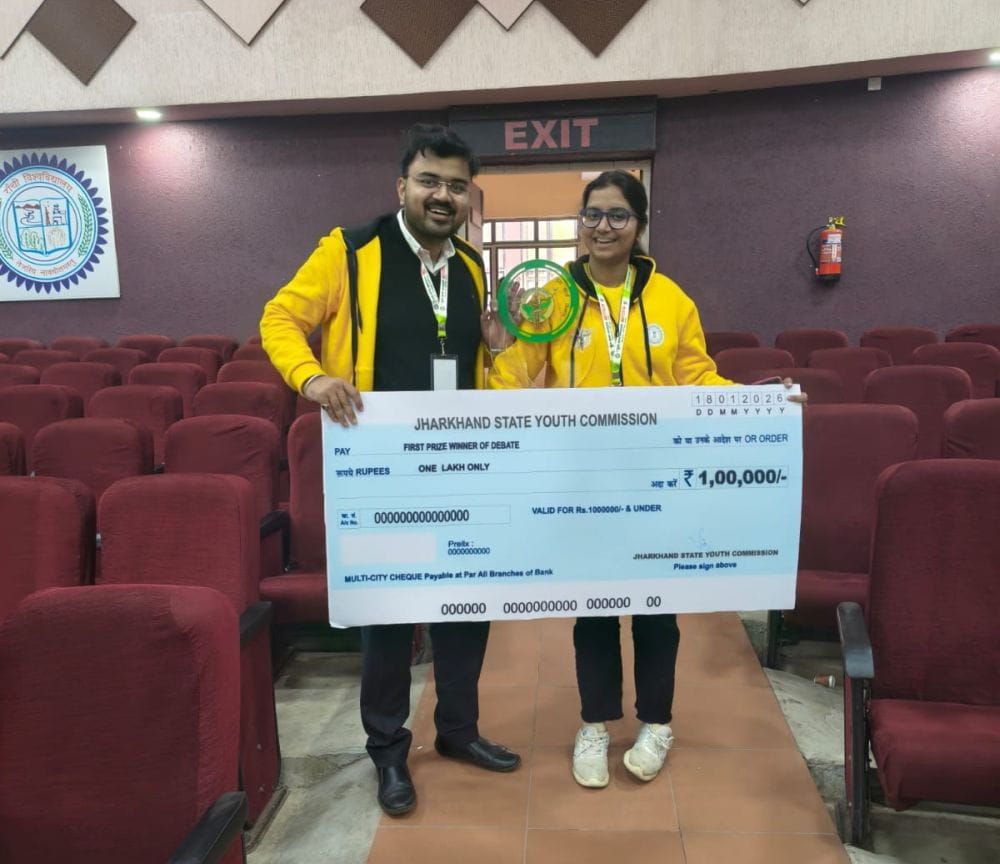 Students of the National University of Study and Research in Law (NUSRL), Ranchi, delivered an outstanding performance by winning the Inter-University Debate Competition at the Yuva Gyan Samagam 2025–26, a prestigious three-day state-level event held from January 16 to 18, 2026.