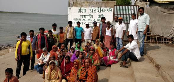 Ganga Praharis – Guardians of the river are motivated and trained volunteers from among the local communities working for biodiversity conservation and cleanliness of the Ganga River with the ultimate objectives of restoring the Nirmal and Aviral Dhara and conserve the ecological integrity of Ganga River under joint collaboration of National Mission for Clean Ganga and Wildlife Institute of India.