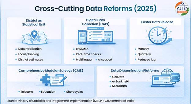 These initiatives lay a stronger statistical foundation for evidence-based policymaking, effective decentralised planning, and informed public discourse, ensuring that India’s official statistics remain fit for purpose in a rapidly evolving economic landscape.
