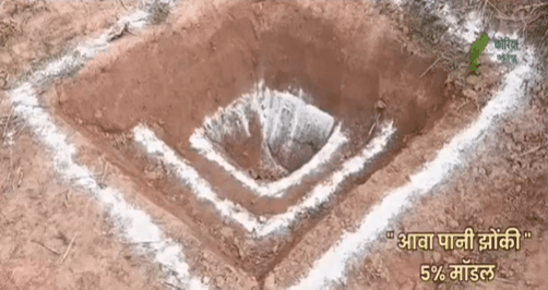Under the Aawa Paani Jhoki movement, farmers voluntarily set aside 5% of their agricultural land to construct small recharge ponds and terraced pits. These structures capture rainwater directly within fields, ensuring that every monsoon drop is retained, absorbed, and reused.