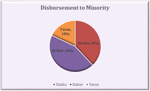 Minority Borrowers: The disbursements amounted to ₹1.33 lakh crore under Shishu, ₹1.54 lakh crore under Kishor, and ₹ 0.62 lakh crore under Tarun.