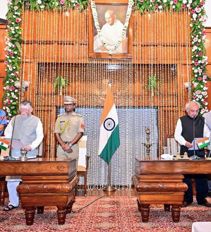 *Seen in this picture is former Jharkhand High Court Justice Amitav Kumar Gupta (right) taking the oath of office as Jharkhand's Lokayukta, administered by Jharkhand Governor Santosh Kumar Gangwar, at Raj Bhavan, Ranchi on April 21, 2026.