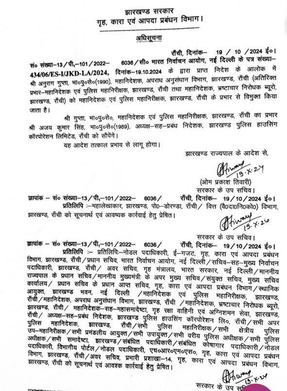 Ajay Singh,1989 batch IPS officer, has been appointed as 15th DGP, Jharkhand.