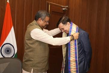 Union Minister for Education Shri Dharmendra Pradhan today met with a high-level delegation led by Mr. Ronald J. Daniels, President, Johns Hopkins University (JHU), Baltimore, Maryland, USA. The delegation also included officials from Gupta Klinsky India Institute (GKII), an internal unit of JHU with a mandate to bring the JHU community with Indian partners through research, education, policy and practice.